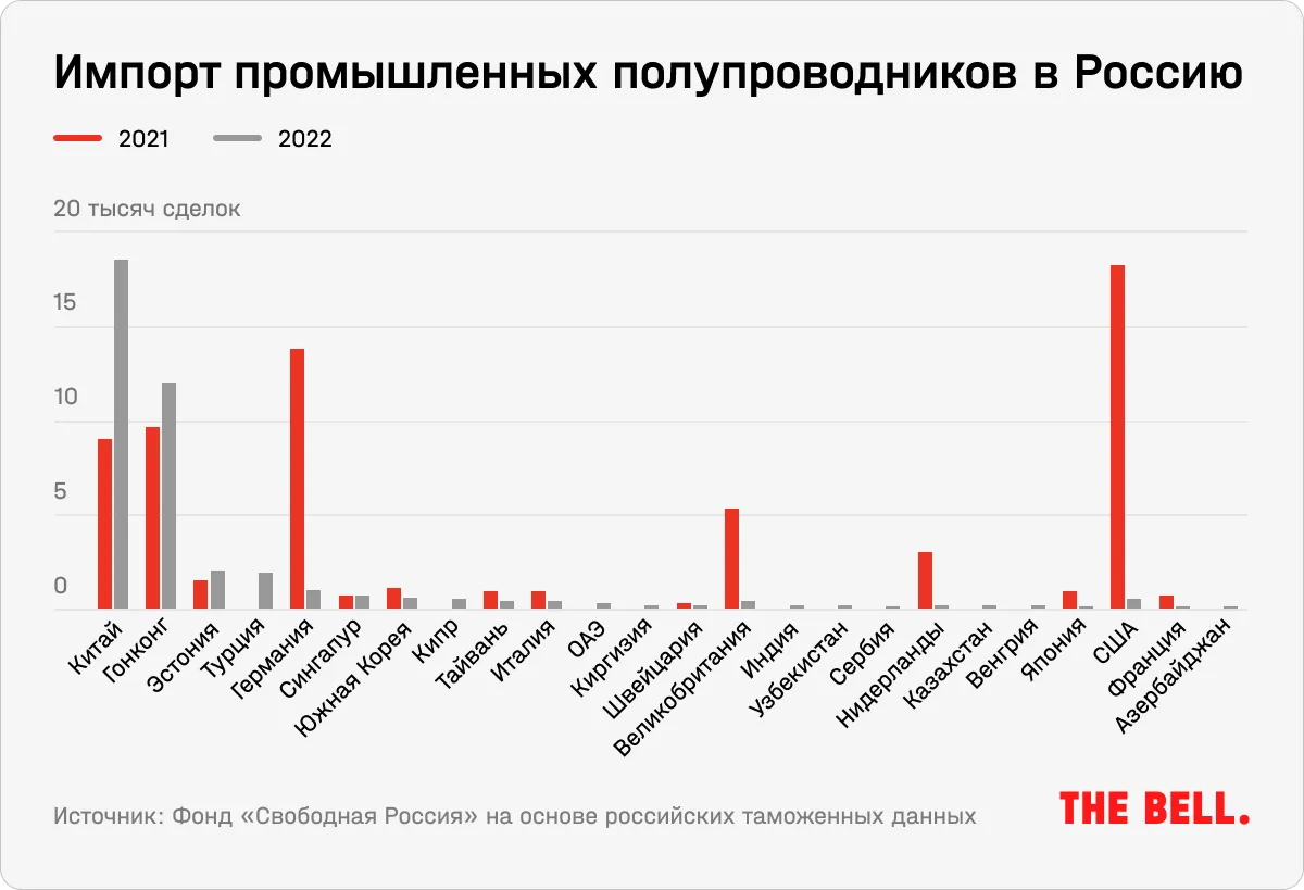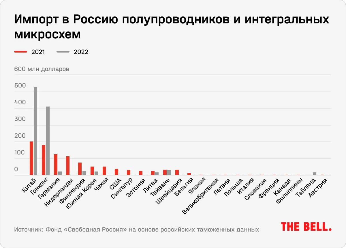 При этом Китай достаточно аккуратно подходит к выполнению западных санкций, когда дело касается крупных компаний. Например, в конце 2022 года китайские власти запретили поставки в Россию процессоров Loongson на собственной архитектуре, которые могли быть использованы в военной промышленности. Но фирмы второго и третьего эшелона, которым непросто выбиться в лидеры на китайском рынке, с интересом смотрят на российский рынок, говорит The Bell собеседник на рынке микроэлектроники. «В китайских объемах легко спрятать запрещенные к экспорту в Россию товары», — говорит он. И действительно, несмотря на ограничения на поставку в Россию полупроводников и микрочипов западными странами, Россия продолжает получать их в больших объемах из Китая, говорится в отчете группы экономистов об итогах первого года санкций.