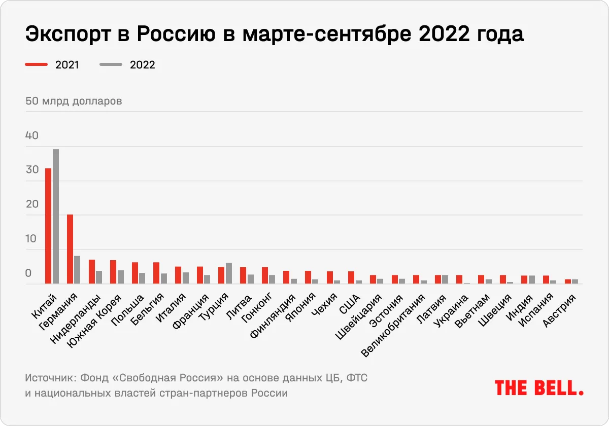 Для России же после вторжения в Украину Китай стал главным торговым партнером, обеспечившим более 40% товарного импорта, оценивал руководитель Института стран с переходной экономикой при Банке Финляндии Иикка Корхонен. С точки зрения зависимости от китайского импорта, по его словам, «Россия сейчас вторая после Северной Кореи».