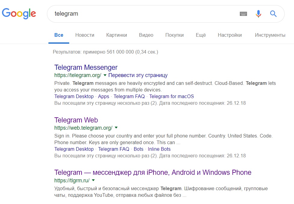 - Но в поисковой выдаче «Яндекса» по запросу «Telegram» официальная страница не появляется.