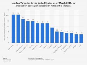 • В 2018 году «Игра престолов» входила в топ самых дорогих сериалов в производстве — съемка одного эпизода обходилась в $10 млн. Больше тратили только на «Отжиг» ($11 млн) и «Корону» ($13 млн) от Netflix и «Скорую помощь» от NBC ($13 млн).
